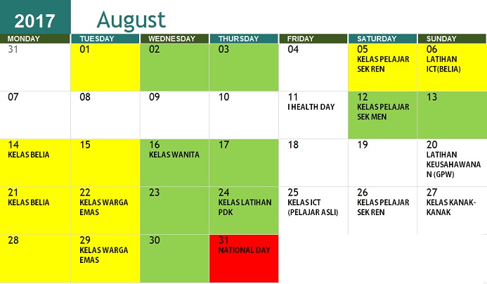 JADUAL AKTIVITI OGOS 2017