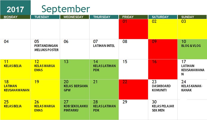 JADUAL AKTIVITI SEPTEMBER 2017