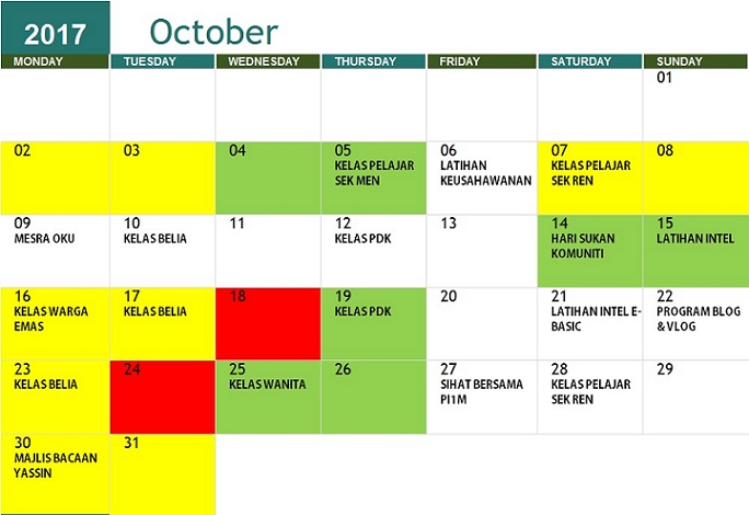 JADUAL AKTIVITI OKTOBER 2017
