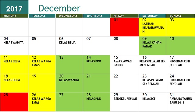 JADUAL AKTIVITI DISEMBER 2017