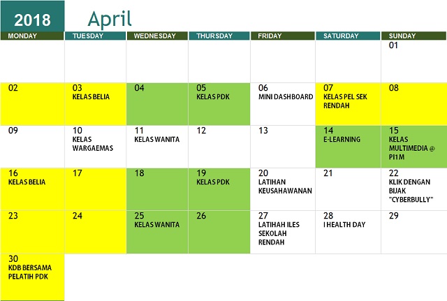 JADUAL AKTIVITI APRIL 2018