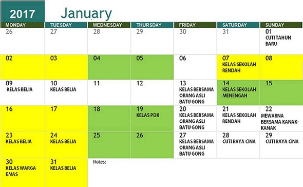 JADUAL AKTIVITI JANUARI 2017