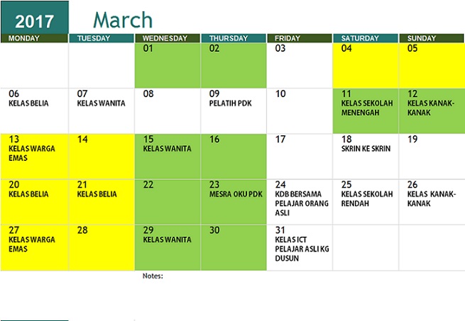 JADUAL AKTIVITI MARCH 2017