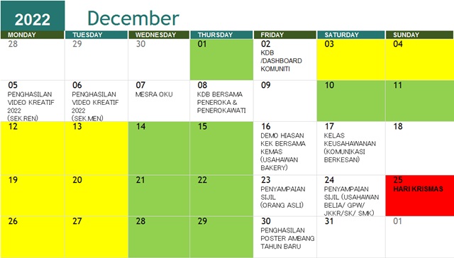 JADUAL AKTIVITI BULAN DISEMBER 2022