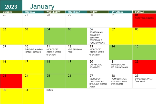 JADUAL AKTIVITI BULAN JANUARI 2023