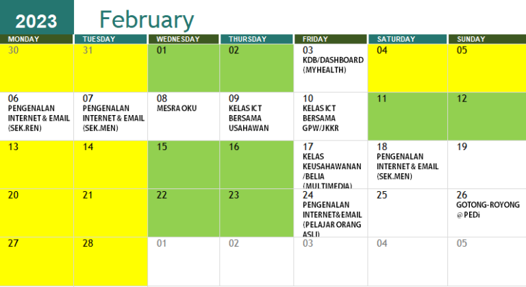 JADUAL AKTIVITI BULAN FEBRUARI 2023