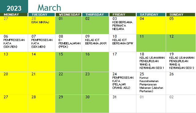 JADUAL AKTIVITI BULAN MAC 2023