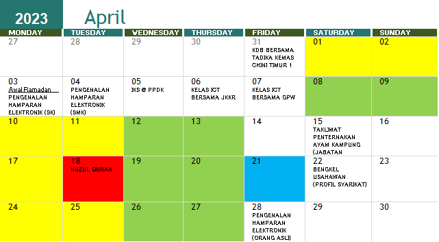 JADUAL AKTIVITI BULAN APRIL 2023