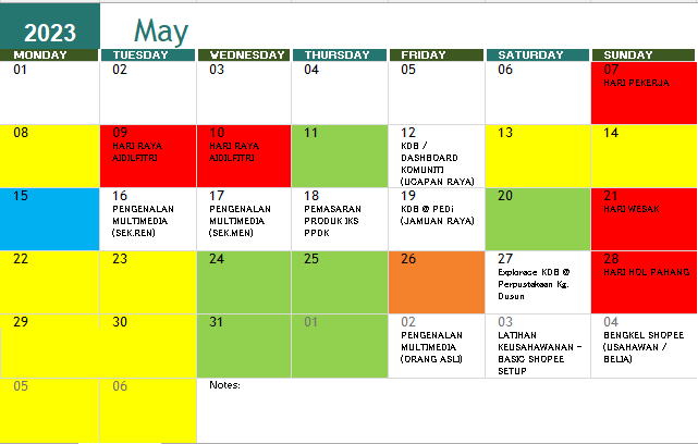 JADUAL AKTIVITI BULAN MEI 2023