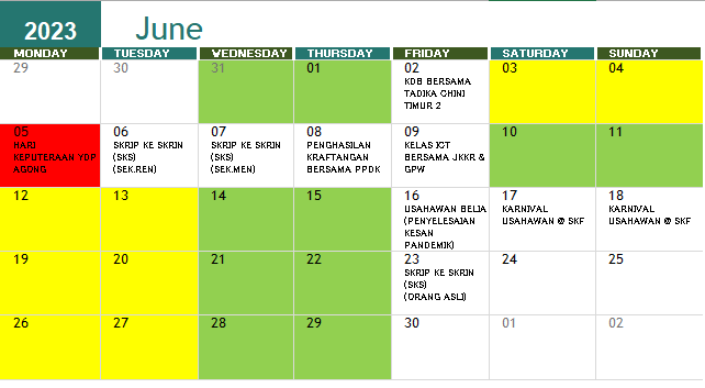 JADUAL AKTIVITI BULAN JUN 2023