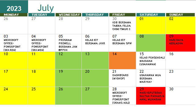 JADUAL AKTIVITI BULAN JULAI 2023