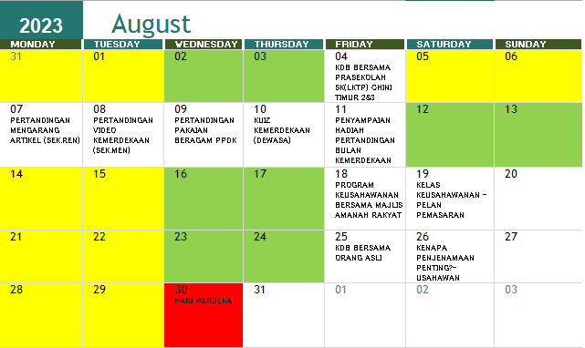 JADUAL AKTIVITI BULAN OGOS 2023