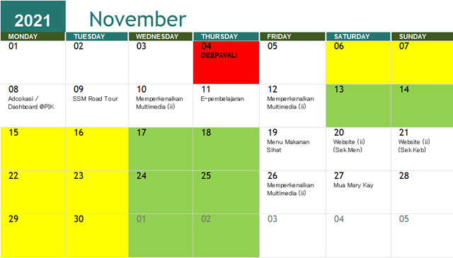 JADUAL AKTIVITI BULAN NOVEMBER 2021
