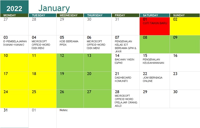 JADUAL AKTIVITI BULAN JANUARI 2022