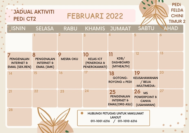JADUAL AKTIVITI BULAN FEBRUARI 2022