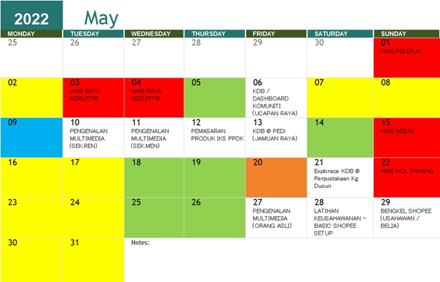 JADUAL AKTIVITI BULAN MEI 2022