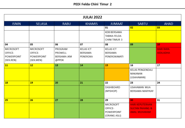 JADUAL AKTIVITI BULAN JULAI 2022