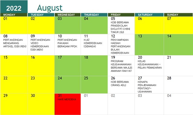 JADUAL AKTIVITI BULAN OGOS 2022