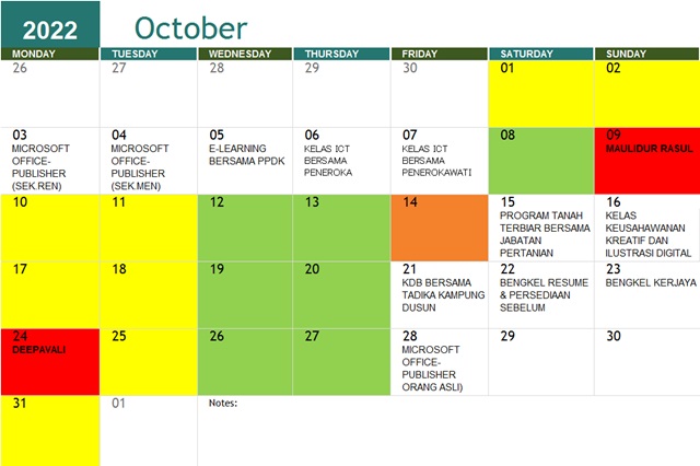 JADUAL AKTIVITI BULAN OKTOBER 2022