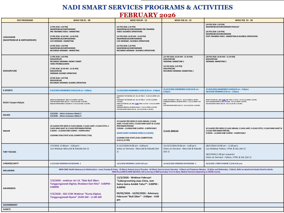 JADUAL AKTIVITI BULAN FEBRUARI 2026